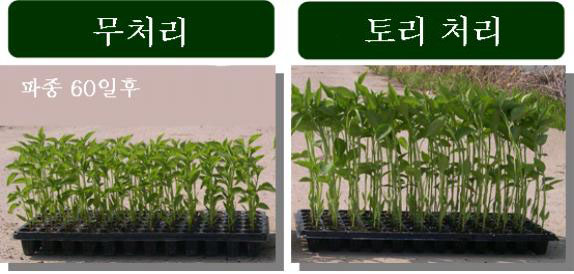°íÃß »ýÀå ÃËÁø ¹× źÀúº´ ¹ßº´ ¾ïÁ¦ È¿°ú Ǫ¸¥¼¼»óÀÌ ½Ä¹°ÀÇ »ýÀå¿¡ ¾î¶² ¿µÇâÀ» ¹ÌÄ¡´ÂÁö ¾Ë¾Æº¸±â À§ÇØ °æ³² â¿ø½Ã ºÏ¸é °íÃ߸ðÁ¾À» Ű¿ì´Â ³ó°¡¿¡¼ ½ÇÇèÀ» ¼öÇàÇß´Ù. °íÃ߸𸦠ÆÄÁ¾ÇÒ ¶§ »óÅä 80kg¿¡ Ǫ¸¥¼¼»ó 2kgÀ» Àß ¼¯¾î¼ ÆÄÁ¾Çϰí, 60ÀÏ µÚ, 󸮱¸¿Í ¹« 󸮱¸¸¦ ºñ±³ÇÑ °á°ú Ǫ¸¥¼¼»óÀ» ó¸®ÇÑ ¸ðÁ¾ÀÌ ¹«Ã³¸®±¸ º¸´Ù ÈξÀ ưưÇÏ°Ô ÀÚ¶õ °ÍÀ» È®ÀÎÇÒ ¼ö ÀÖ¾ú´Ù (±×¸² 5). ±×¸®°í ±× ÇØ 7~8¿ù¿¡ ³ëÁö¿¡¼ ÀÚ¶õ °íÃßÀÇ ¹ßº´ »óŸ¦ ºñ±³ÇÑ °á°ú, Ǫ¸¥¼¼»óÀ» ó¸®ÇÑ °íÃß°¡ ¹«Ã³¸®±¸ÀÇ °íÃß¿Í ºñ±³ÇØ ÅºÀúº´ ¹ßº´À²ÀÌ ÇöÀúÈ÷ ³·À½À» ´«À¸·Î È®ÀÎÇÒ¼ö ÀÖ¾ú´Ù(±×¸² 6)